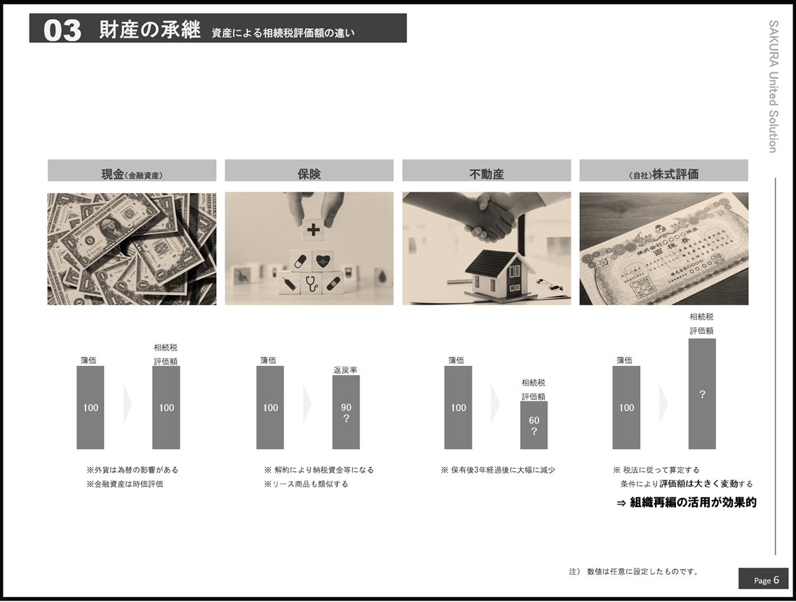 たとえば、財産管理会社が現金で収益不動産を購入すれば、その瞬間に資産の評価額を数千万円単位で圧縮できる可能性があります。こうした対策を財産管理会社で行うことで、本業である事業会社の経営に影響を与えることなく、承継対象となる株式の評価額だけを効率的に引き下げることが可能になるのです。